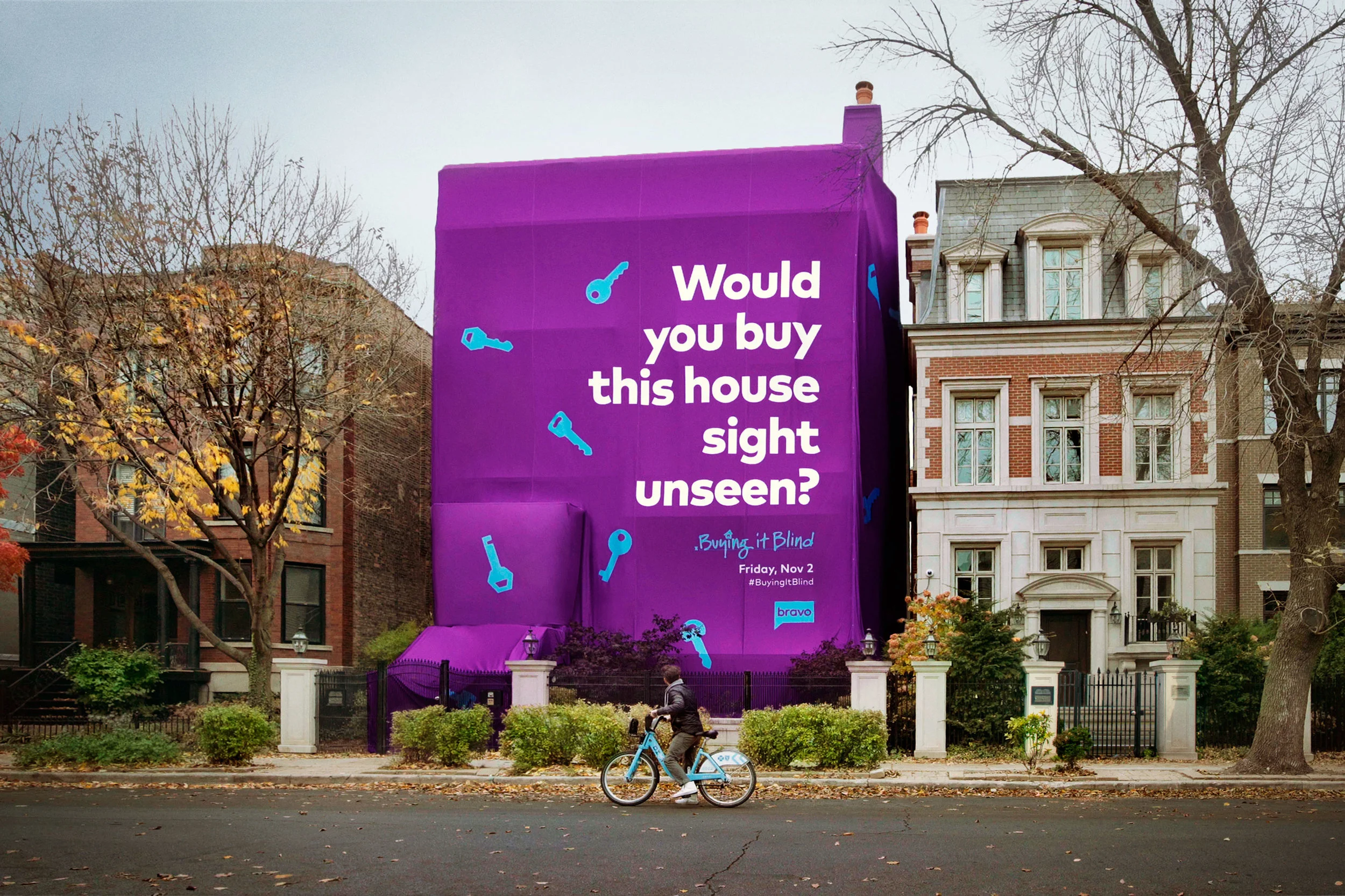 That’s the million dollar question we brought to life with a non-traditional OOH campaign promoting the premiere of Bravo’s new real estate show, “Buying It Blind.” We selected homes in the three biggest cities in the US — New York, Chicago, and Los Angeles. These hidden homes served as larger than life billboards that stopped people in their tracks and generated buzz across the country.